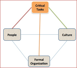 From management literature (Tushman & O’Reilly), the congruence-based problem solving is a method to quickly and accurately identify the root cause of performance or opportunity gaps. In the context of security architecture, the congruence model can be applied to creating comprehensive security assessments for an organization. The model emphasizes analysis of the relationships among four core components of an organization (shown in the graphic below) also called the building blocks whose alignment relationships are the focus of congruent security architecture techniques. The goal is to leverage the relationships and interactions between those core components to reveal the underlying security posture of an organization. Each congruence relation is important in forming organizational diagnoses that help us understand the current state of security in the enterprise, and the causes of the vulnerabilities. Analyzing these relations tends to define the political map and how the players tend to navigate it. It helps identify organizational behaviors that are helpful, neutral or detrimental to the security architecture initiative. Analyzing the following three alignments using an appropriate “congruence questionnaire” is crucial to determining the security posture of the enterprise.