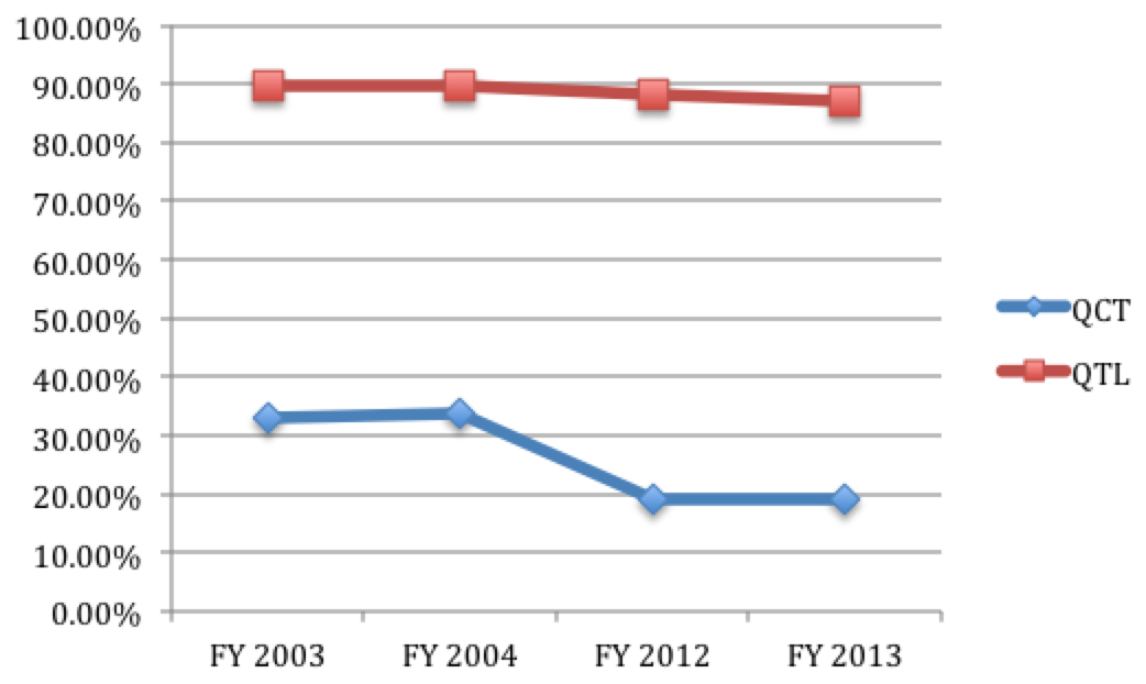 Figure 1: QCT & QTL Gross Margin Trend (2003-13)